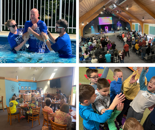 Each Sunday we meet at two campuses. Both locations typically have live preaching, music, and programming for families. Select the photo below of the campus nearest you to learn more about each one.